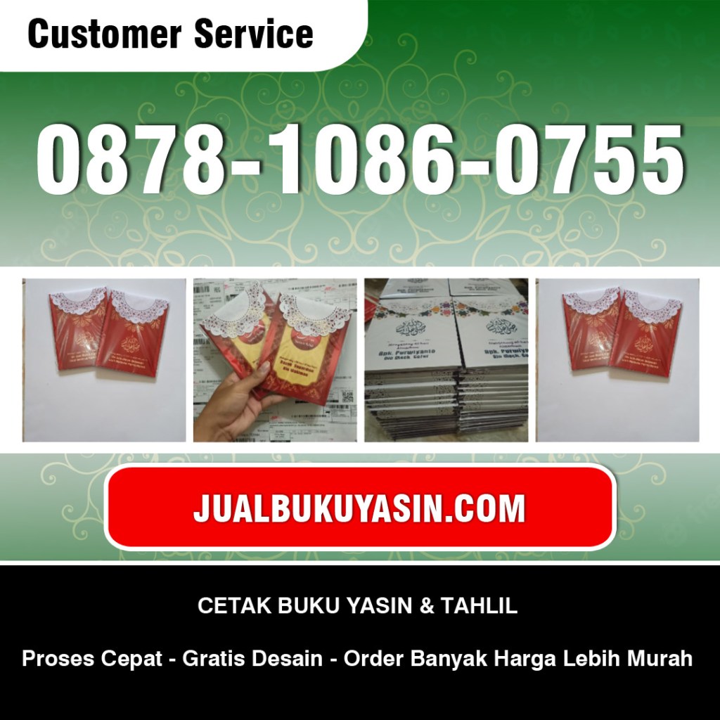 WA 0878-1086-0755 Buku Yasin Cover”0878-1086-0755 (WA) Buku Yasin Cover, Cetak Buku Yasin Jakarta, Cetak Yasin Murah Jakarta, Bikin Buku Yasin Murah Cirebon, Buku Yasin Custom, Percetakan Buku Yasin Ciledug, Cetak Buku Yasin Cilegon, Jual Buku Yasin Semarang, Percetakan Buku Yasin Pekalongan, Yasin Murah Wonosariالسَّلاَمُ عَلَيْكُمْ وَرَحْمَةُ اللهِ وَبَرَكَاتُهُSelamat Datang di Pusat Cetak Buku Yasin dan Tahlil Berkualitas dan TermurahBuku Surat Yasin biasanya dipesan untuk tahlilan dan souvenir memperingati 40, 100, 1000 hari kematian saudara atau kerabat. Disini kami menyediakan Buku Yasin Murah yang bagus, kuat, eksklusif dan menyediakan berbagai desain sesuai pesanan dan kebutuhan Anda dengan harga yang terjangkau.Hubungi Kami untuk memperoleh harga dan pelayanan terbaik.Jaminan pengiriman yang aman adalah salah satu upaya kami menjaga dan memberikan pelayanan terbaik untuk Anda.Whatsapp : 0878-1086-0755 (24 Jam)Website:https://www.jualbukuyasin.comAlamat:Jl. Mastrip No. 54 Lambangkuning Kec. Kertosono Kab. Nganjuk – Jawa Timur 64315Diupload Oleh: WIDYA NURCAHYA #BukuYasinCover #CetakBukuYasinJakarta #CetakYasinMurahJakarta #BikinBukuYasinMurahCirebon #BukuYasinCustom #PercetakanBukuYasinCiledug #CetakBukuYasinCilegon #JualBukuYasinSemarang #PercetakanBukuYasinPekalongan #YasinMurahWonosari”